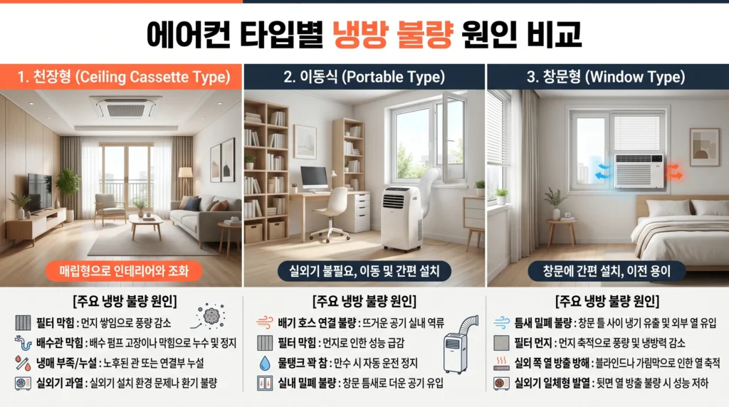 📌 1. 타입별 냉방 불량 원인 한눈에 비교