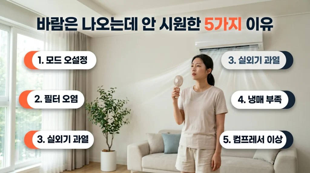 에어컨 바람은 나오는데 시원하지 않은 이유 5가지 진단법