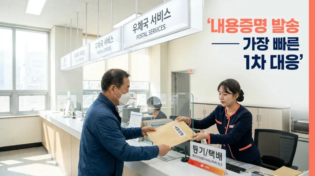 증거가 확보됐다면 바로 내용증명을 보낼 차례예요. 내용증명은 법적 효력이 있는 공식 통보 수단이에요. 우체국 창구 또는 인터넷우체국(ipost.kr)에서 발송할 수 있어요.