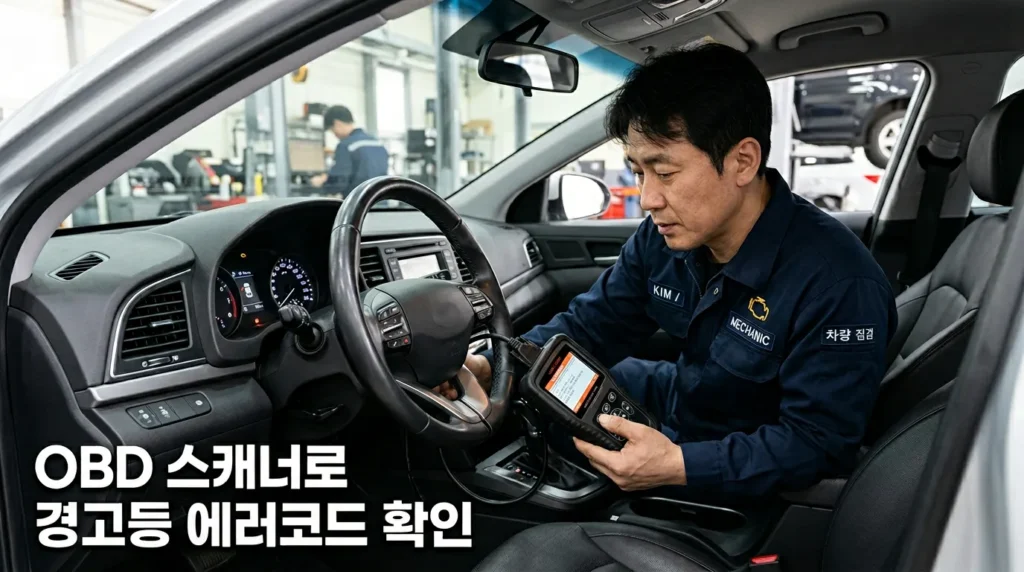 A. OBD-II 단자(운전석 하단)에 시중에서 판매하는 OBD 스캐너를 연결하면 블루링크 없이도 에러 코드를 확인할 수 있어요. ELM327 타입 블루투스 스캐너와 스마트폰 앱 조합이 가장 저렴해요(약 1~2만 원).