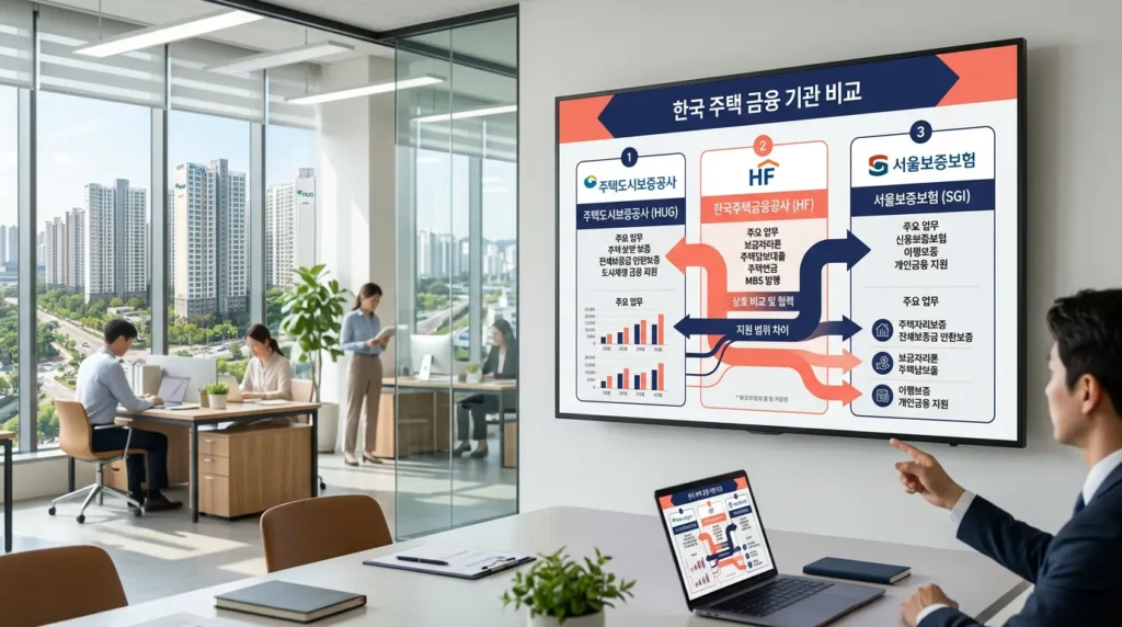 | 구분 | HUG (주택도시보증공사) | HF (한국주택금융공사) | SGI (서울보증보험) |