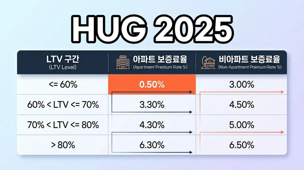 📌 핵심: 아파트 + LTV 80% 이하 = 가장 낮은 요율 적용