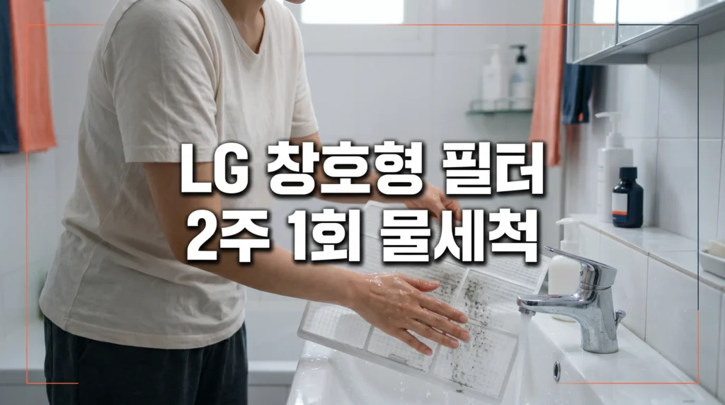 ✅ LG 창호형 에어컨 필터는 극세 필터로, 2주 1회 물세척이 권장돼요.