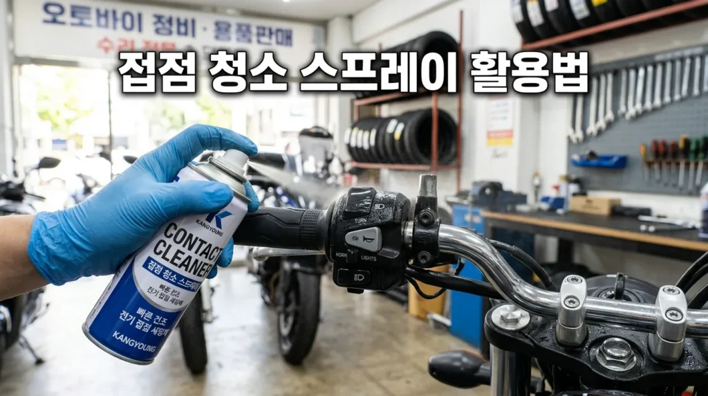 A. 핸들바 스위치 내부로 습기가 침투해 접점이 산화된 경우예요. CRC 2-26 또는 WD-40 접점 청소 스프레이를 스위치 틈새에 뿌리면 대부분 해결돼요. 스프레이 비용은 5,000~8,000원이에요.
